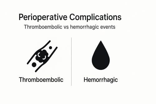 Both univariate and multivariate logistic regression analyses were employed to identify factors associated with perioperative thromboembolic events (TEs) and hemorrhagic events (HEs). Factors exhibiting a p-value of less than 0.1 in the univariate analysis were entered into the multivariate regression analysis. Odds ratios (ORs) and 95% confidence intervals (CIs) were calculated to determine the strength of associations.