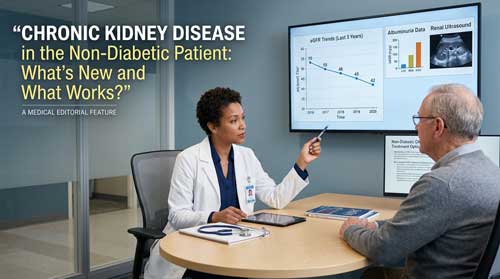Chronic kidney disease (CKD) represents a major global health challenge, affecting more than 850 million people worldwide and contributing substantially to cardiovascular morbidity, premature mortality, and escalating healthcare costs. Although diabetic kidney disease remains the most recognized contributor to CKD burden, non-diabetic causes account for approximately 40 to 50 percent of all cases, making them a critical focus of nephrology practice. These non-diabetic etiologies encompass a heterogeneous group of disorders with distinct pathophysiological mechanisms, rates of progression, and therapeutic considerations. Effective management therefore requires both precise etiological assessment and individualized long term care strategies aimed at preserving renal function and reducing systemic complications.