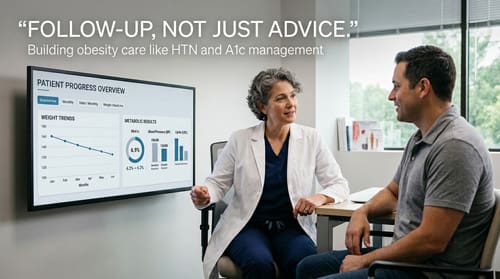 Obesity is increasingly recognized as a chronic, relapsing, multifactorial disease that requires long term clinical management rather than episodic intervention. Its pathophysiology involves complex interactions among genetic predisposition, neuroendocrine regulation, metabolic adaptation, environmental influences, psychological factors, and social determinants of health. Despite this recognition, obesity management in routine practice remains inconsistent and often lacks the structured follow up systems that are standard in the care of other chronic diseases such as hypertension and diabetes mellitus. This gap persists even though obesity affects more than 650 million adults worldwide and contributes substantially to cardiovascular disease, type 2 diabetes, musculoskeletal disorders, chronic kidney disease, fatty liver disease, reproductive disorders, and several forms of cancer.